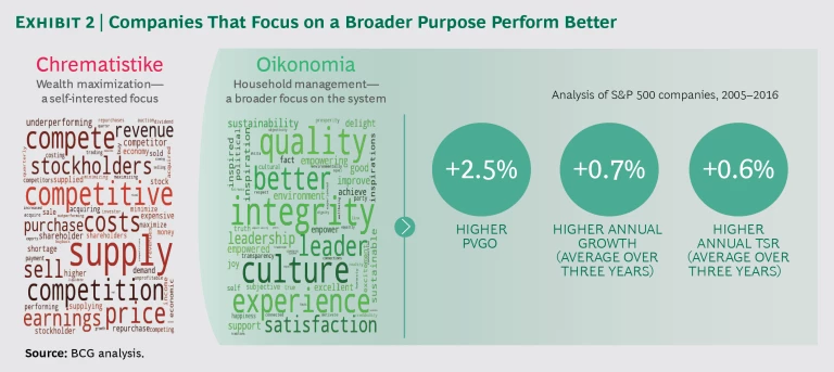 Interestingly, Aristotle advocated this perspective more than 2,000 years ago. He argued that wealth maximization as an end in itself is likely to undermine society and must instead be directed toward a higher purpose—a purpose that is in line with larger goals related to the welfare of all. In fact, our research leveraging natural language processing (NLP) shows that firms pursuing such a purpose have been rewarded by faster growth, higher employee engagement, and, paradoxically, superior financial performance. We suggest some principles of a strategic agenda that leaders can follow to humanize their companies in ways that generate benefits for both the business and the broader system.