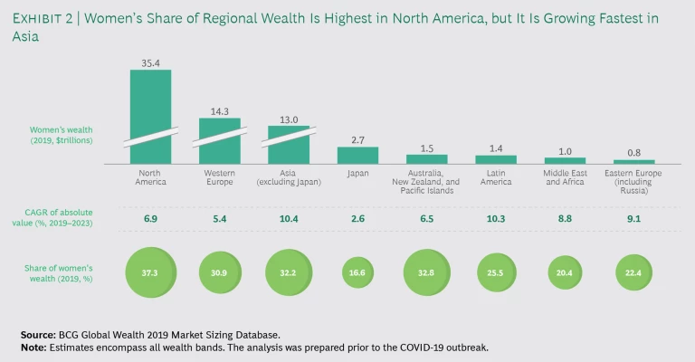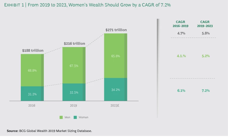 With a third of the world’s wealth under their control, women have become a sizable economic force. They are increasing their wealth faster than before—adding $5 trillion to the wealth pool globally every year—and outpacing the growth of the wealth market overall.