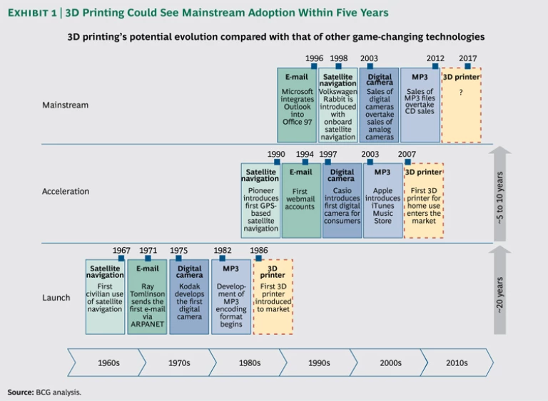 We believe that 3D printing will, in fact, prove a game changer for large swaths of industry—and, critically, that its impact will be felt far sooner than many people expect. The technology is already well developed and continues to advance; costs and prices are falling; investment in the industry, while still quite small relative to that in mobile technologies and wireless infrastructure services, is accelerating; and remaining hurdles to adoption are being surmounted. In short, 3D printing is on a fast track to mainstream adoption—and the time for companies to weigh the ramifications for their business is now.