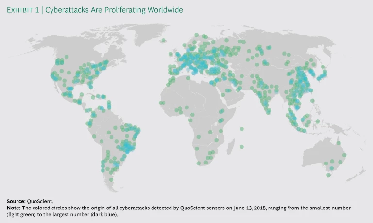Cyberattacks are becoming more numerous, ambitious, and effective, with criminals regularly targeting payment systems, IT systems, and databases. (See Exhibit 1.) The vast majority of attacks go unreported, but numerous banks have been hit in the past year. In its most recent annual risk report, the World Economic Forum observed that cyberattacks are the most likely manmade risk facing the global economy, with data fraud/theft coming next. Not even central banks are immune. One of the most notorious recent incidents saw hackers take tens of millions of dollars from a central bank payment system.