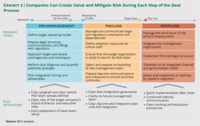 While the three steps to creating value are essential in their own right, their application within a coordinated timeline mitigates risk and unlocks the true potential for M&A value.