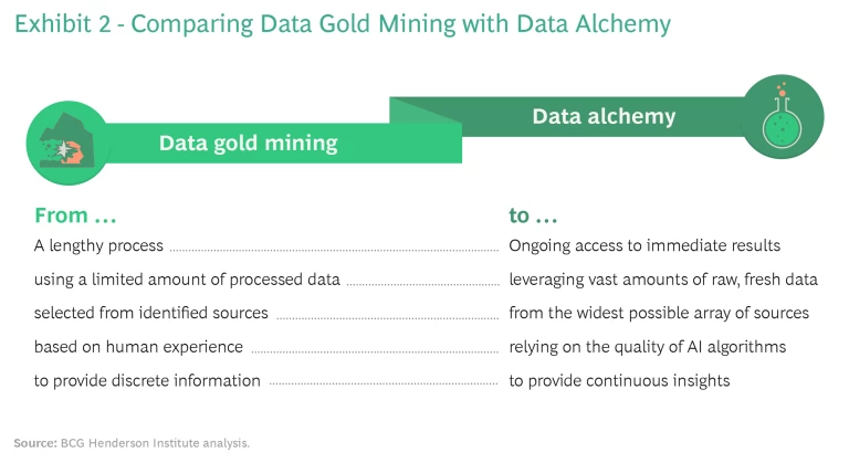 The practice of data alchemy, though it may seem unfamiliar at first, is accessible and scalable. It is not just the province of digital natives. On the contrary, a growing number of traditional companies are making the shift and updating their decision-making processes accordingly.