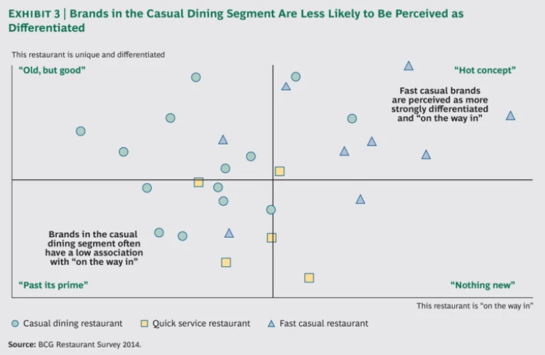 Multiple indicators support the view that the CDR segment is at another historical inflection point, with older brands that have not maintained differentiation fading and newer players rising to take their places. Word of mouth, for example, is a big influencer of restaurant traffic. The BCG Brand Advocacy Index measures this critical metric by using a method that has a high correlation with