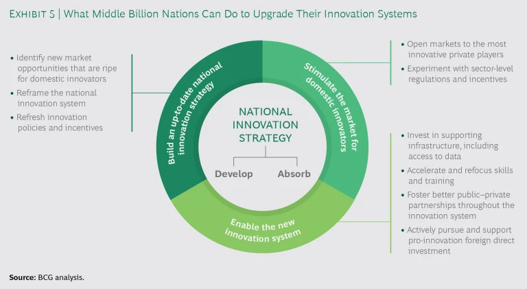 Building an up-to-date innovation strategy for a Middle Billion nation involves identifying appropriate new market opportunities, reframing the national innovation system, and refreshing innovation policies and incentives.