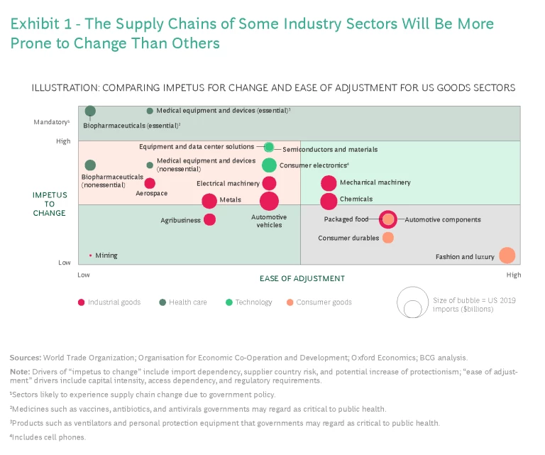 These pressures will not affect all industrial sectors equally. In some segments of the biopharmaceutical and medical device and equipment sectors, for example, changes in supply chains may be needed if governments mandate local production in the wake of COVID-19. In many other sectors, adjustments will require balancing a number of tradeoffs.