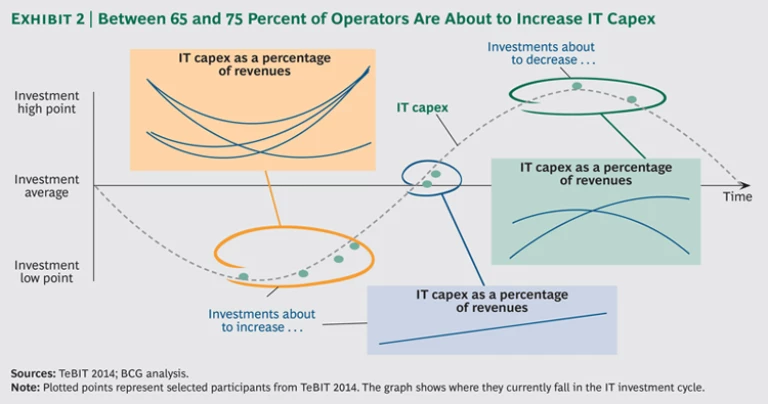 That is a figure telcos can—and must—grow. It will require continued investment in the IT systems that support the new routes to value, but the timing is fortuitous for many telcos. Our analysis of expenditure patterns suggests that 65 to 75 percent of participants will be increasing their IT capex in the coming years. They need to make the most of that opportunity.