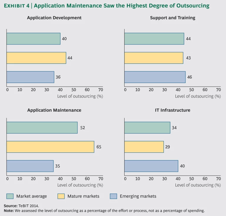 The crucial point is that these are strategic decisions. They need to be made not in a piecemeal way by individual IT units, but top down, guided by an overall vision and how to get there. This year’s study, for example, suggests that telcos will see a bigger payoff from outsourcing when they carefully consider where—and to what extent—it is deployed. That requires seeing the big picture, instead of making isolated decisions for each IT process.