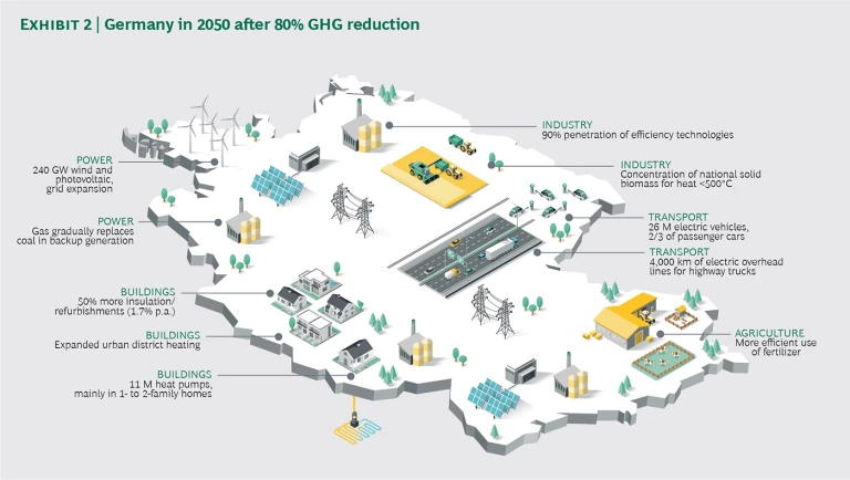 - The 80 percent path requires, beyond existing efforts, a further acceleration of the transition in the electricity sector, a significant expansion of sector coupling, greater exploitation of existing efficiency potentials, and a re-allocation of biomass to the industrial sector, among other things.