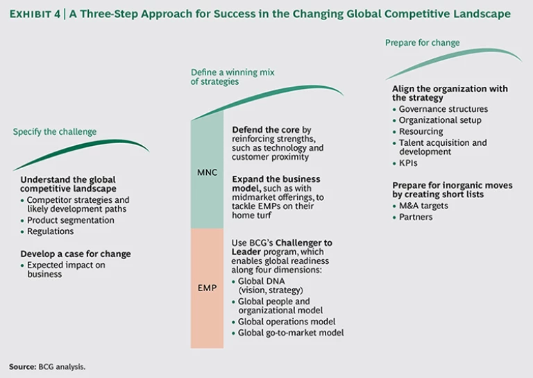 To compete with MNCs on the global stage more effectively, EMPs need to revamp their strategies for products and technology, operations, and go-to-market approaches.