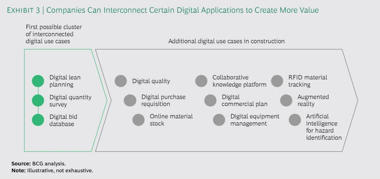 Once a company has perfected its digital lean techniques, it can expand to other related activities and accrue ever greater benefits. Given the low level of digitization in the industry, those companies that embrace digital lean could reap dramatic productivity gains and give themselves a competitive advantage. (See “How Technology Is Revolutionizing Construction,” BCG article, June 2016.)