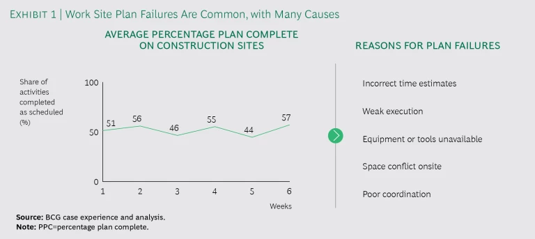 Only about 50% of planned activities on a construction site are completed on schedule—no better than a coin toss.