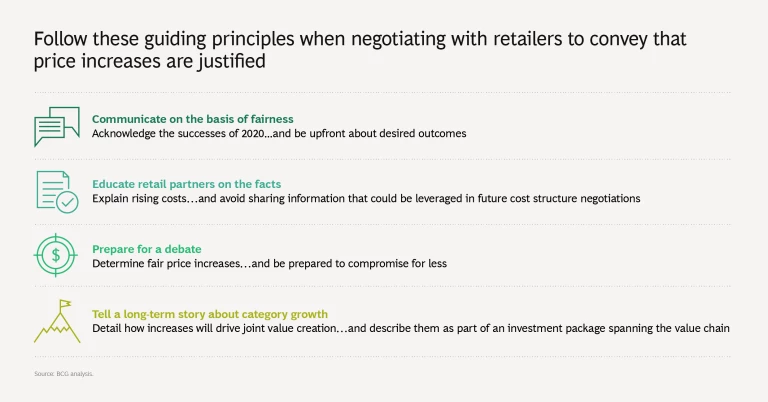 Given the CPG industry’s success in 2020, retailers may be asking why suppliers can’t just absorb rising input costs, at least for the time being, or until cost trends become clearer. We recommend focusing on execution and retail interactions to ensure that price moves are attractive and successful.