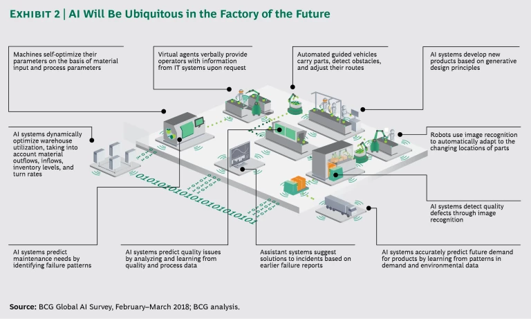 Inside the Factory. Inside the factory walls, AI will bring various benefits to production and to such support functions as maintenance, quality, and logistics: