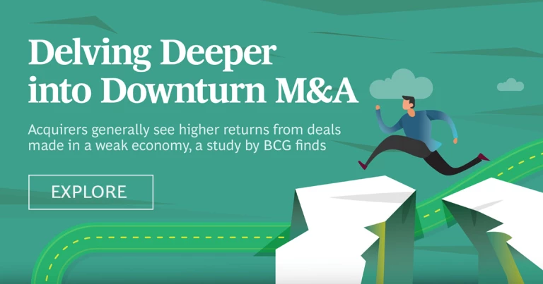 The 2019 M&A Report examines how dealmakers should think about M&A activity in a downturn. Our recommendations are based on a study of the returns of dealmaking throughout the economic cycle. Simply put, our research shows that downturns can be excellent times for dealmaking. But success requires careful preparation, thorough execution, and, especially, bold decision making.