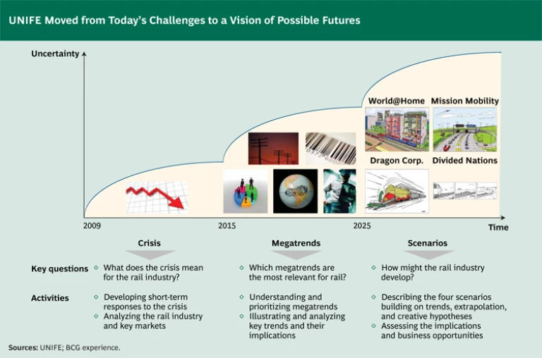 In 2009, UNIFE, the association of the European rail industry, felt certain that the future would not be a linear projection of the past. The financial crisis and subsequent recession were putting unprecedented stress on customers. Trade patterns were shifting. New competitors were emerging. UNIFE’s members needed to think both more expansively and more creatively. They needed scenarios.