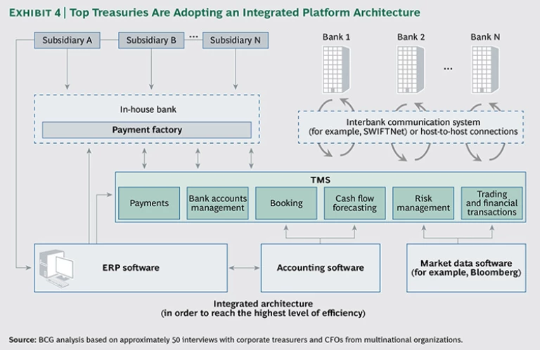 The Banking-Platform Challenge. Corporate treasurers want systems that can deliver a single consolidated view of their liquidity. But the current solutions landscape remains fragmented among single banks and multibank platforms, bank-agnostic connection providers (such as SWIFT), enterprise resource-planning (ERP) systems, and TMS. While banks are currently well positioned, survey findings indicated that treasurers are increasingly turning to nonbank players for this consolidated view—especially for cash management.
