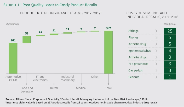 Awareness-raising efforts should also emphasize the financial impact of quality incidents. The high costs of product recalls arising from quality deficiencies are especially obvious. (See Exhibit 1.) These costs are incurred by companies across industries, although the automotive industry suffers the most.