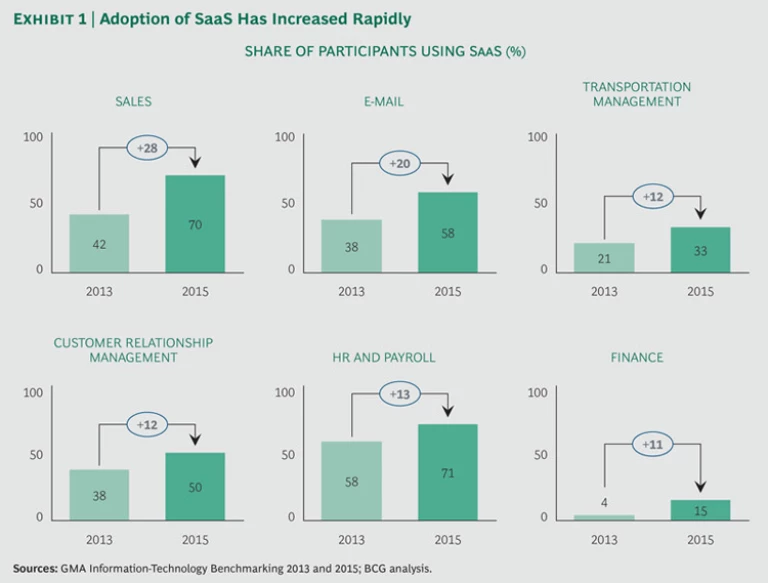 From 2015 through 2018, the global SaaS business is forecast to grow at more than twice the rate of traditional, on-premise enterprise software. CPG companies are