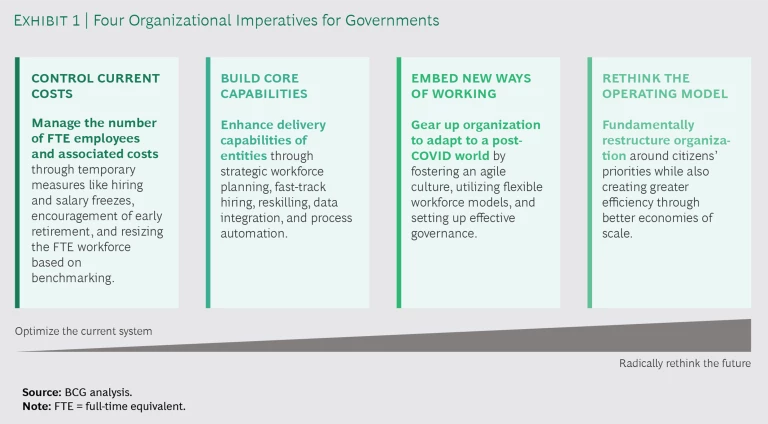 COVID-19 provides the right burning platform for governments to launch the necessary organizational rethinking and redesign. We suggest they start by choosing from among a specific set of imperatives based on their particular needs and political environment.
