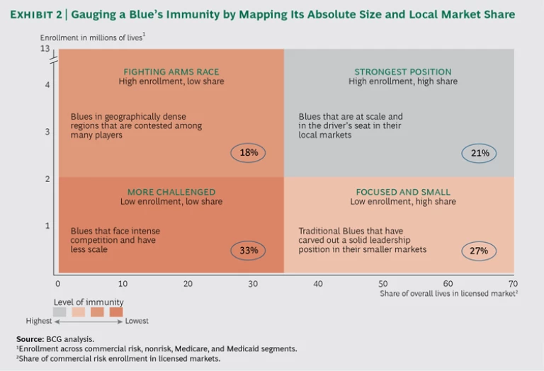An additional wrinkle is that consolidation is not evenly distributed. Depending on how Cigna and Anthem reorganize their holdings, some Blue plans may face more direct challenges than others. (See the sidebar.)