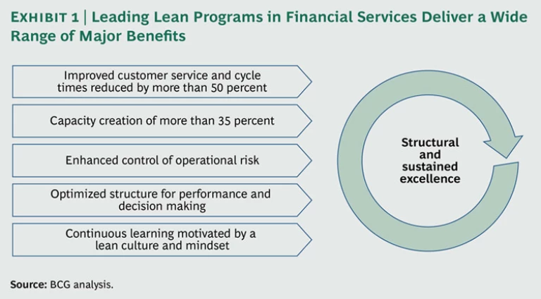 Many financial institutions have attempted lean programs of varied scope, but relatively few have achieved the level of success they anticipated. Some institutions have undergone process improvement programs (primarily centered on operations) and have realized limited benefits. Others have carried out comprehensive lean programs and achieved a true step change in some areas but fallen short of embedding the lean mindset in their organizations.