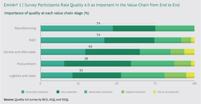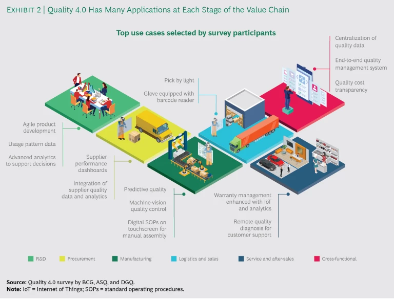 A recent study by BCG, in partnership with ASQ and Deutsche Gesellschaft für Qualität (DGQ), sought to better understand technology’s role in addressing the imperative to transform quality management. The study focused on the opportunities and challenges arising from Quality 4.0—the application of Industry 4.0’s advanced digital technologies to enhance traditional best practices in quality management. (See “About the Study.”)