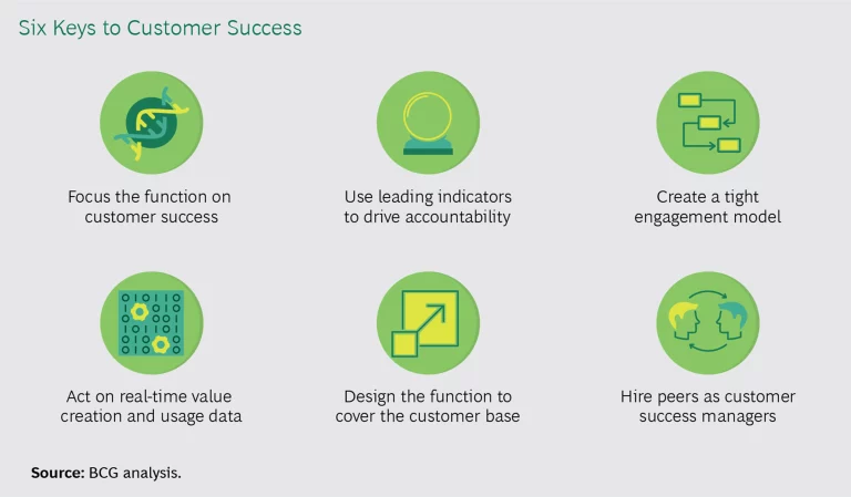 The six keys we’ve discussed will help companies build an effective CS function, but they don’t guarantee product adoption by—or value creation for—customers. Driving customer success is the entire company’s responsibility. In our experience, customer churn can result from decisions that the sales function makes to maximize revenue generation in activities such as selecting clients and setting expectations during the presale process.