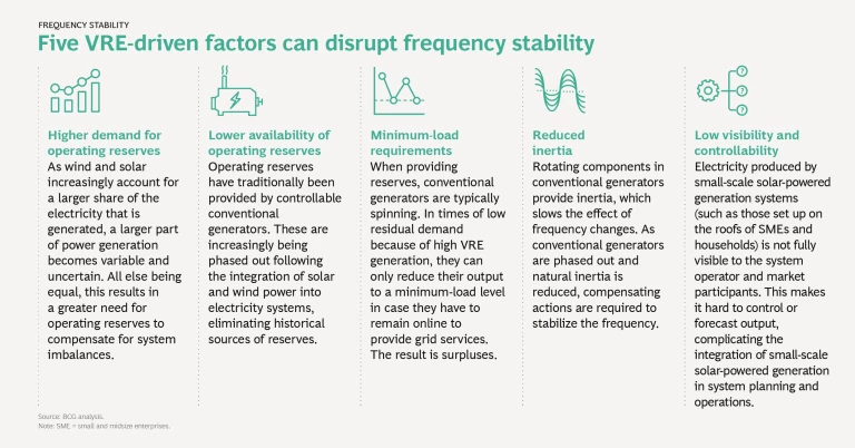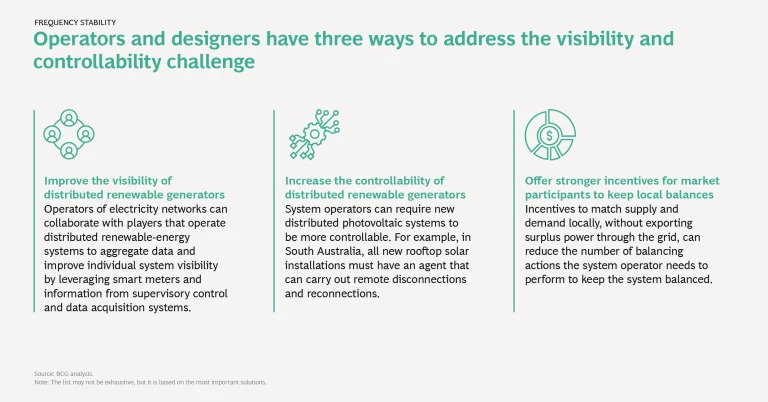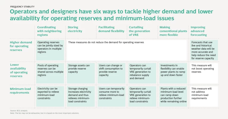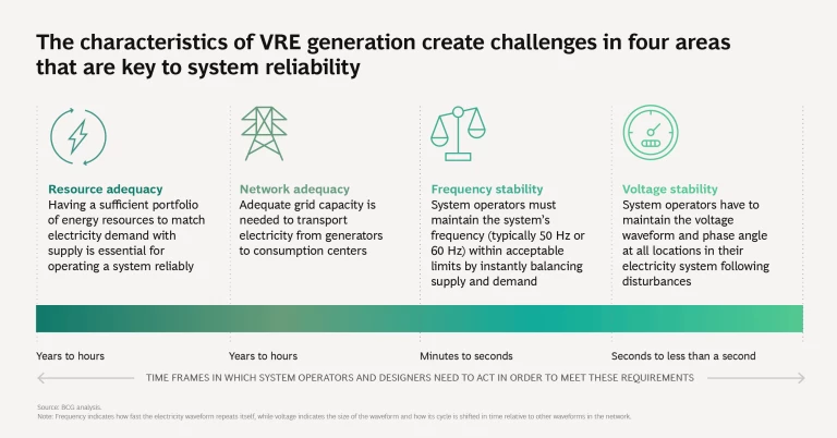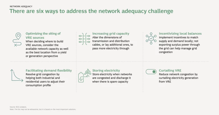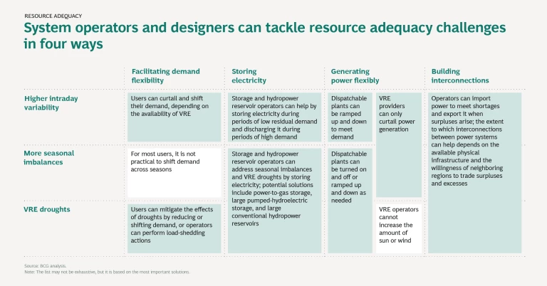 As the share of VRE rises, tackling these four challenges will become increasingly urgent for system operators and designers. To ensure that electricity grids are reliable, operators will need to weigh a variety of measures. These include investing in new grid infrastructure and tools, retaining more dispatchable generators, increasing storage and demand-side flexibility, and implementing the right set of incentives to ensure that various stakeholders act to address the challenges.