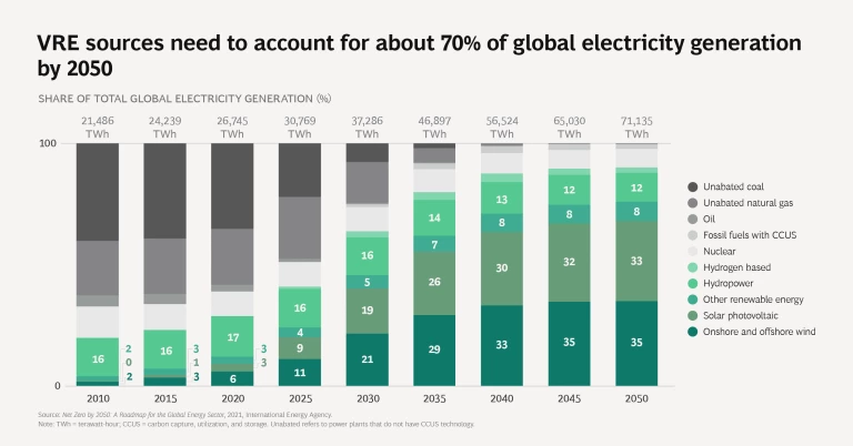 Renewable energy will need to make up the majority of global electricity generation by 2050—as much as 90%, according to the International Energy Agency—for the world to achieve net-zero emissions by then.