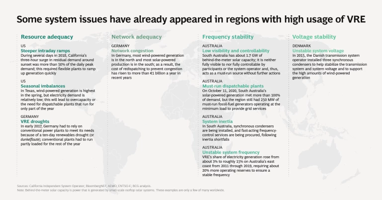 In places that generate a lot of electricity from VRE—for example, Australia, California, Denmark, Germany, and Texas—we have already seen greater system instability arising from issues in these areas.