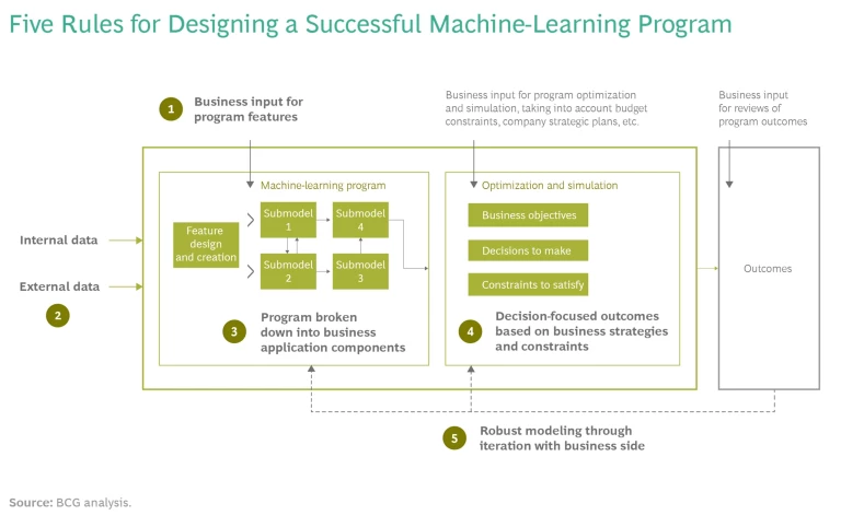 To address the divide between the promise of machine learning and the disappointing results in real-time decision making and other business applications, BCG has distilled five rules. They range from determining which machine-learning applications to focus on to ensuring that an application is sufficiently robust.