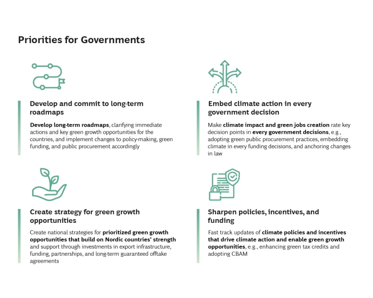 12 recommendations have been outlined that all stakeholders in the Nordics should consider to get on the path to Nordic net zero and maximize the value-creation opportunities of the transition.