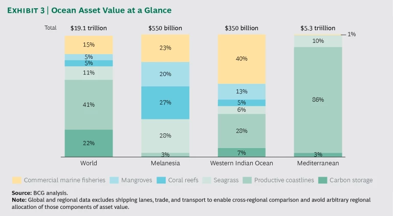 Ocean Asset Value. The value of the ocean’s assets varies considerably across regions. (See Exhibit 3.)