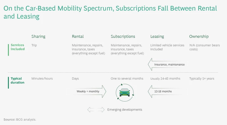 Changing customer preferences, among them the waning interest in owning physical products, have been accelerating the shift to subscription-based offerings beyond software and digital services. In addition, the COVID-19 pandemic drove many urban residents and commuters away from public transit and shared mobility modes to seek the safety of private vehicles.
