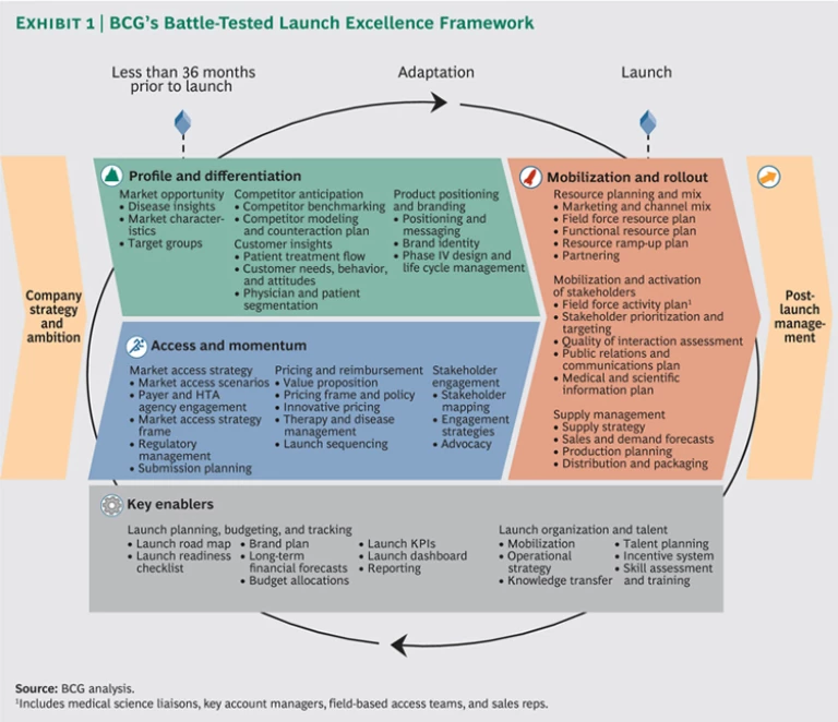 The new reality of the pharmaceutical marketplace is one of increasing complexity, mounting uncertainty, and intense competition. These challenges stem from a host of pressures, including declining R&D productivity, increasingly crowded markets, and high market-access and reimbursement hurdles. As a result, a new product’s success or failure hinges on the effectiveness of the launch and is judged by the market more quickly than ever before. Therefore, it is imperative that pharmaceutical companies employ a comprehensive launch strategy: one that coordinates all functions across the organization and drives decisions from the preparation phase through rollout. The BCG framework—based on a set of robust, battle-tested tools—can be adapted to any situation and applied in totality or in modules, depending on a company’s needs.