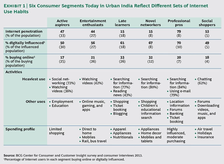 Another fast-growing category, “novel networkers,” accounts for some 7 million of India’s total online population. Their ranks will quadruple in the next few years. This group is predominantly female and belongs to India’s emerging middle-income segment. These users are active online shoppers and are exposed to a high level of digital influence in the product purchase cycle. They use both phones and laptops to get access to brands and collections of apparel and accessories that are not available in their towns. They do extensive research using product reviews on various portals before purchasing.