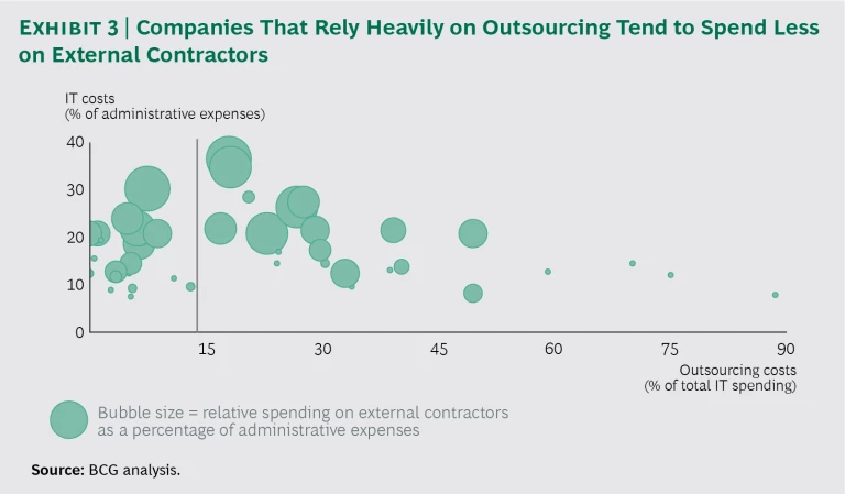 - For companies that spend big on external contractors but use outsourcing only sparingly, consider increasing outsourcing to reduce the need for external contractors.