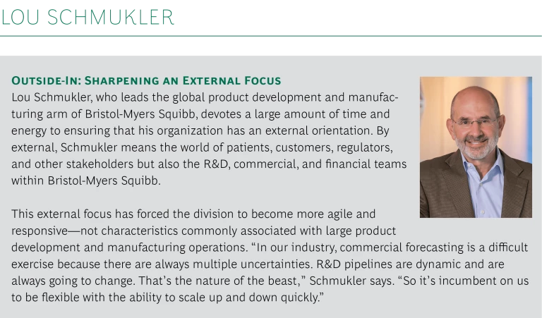 - Lou Schmukler, president of Global Product Development and Supply at Bristol-Myers Squibb for five years