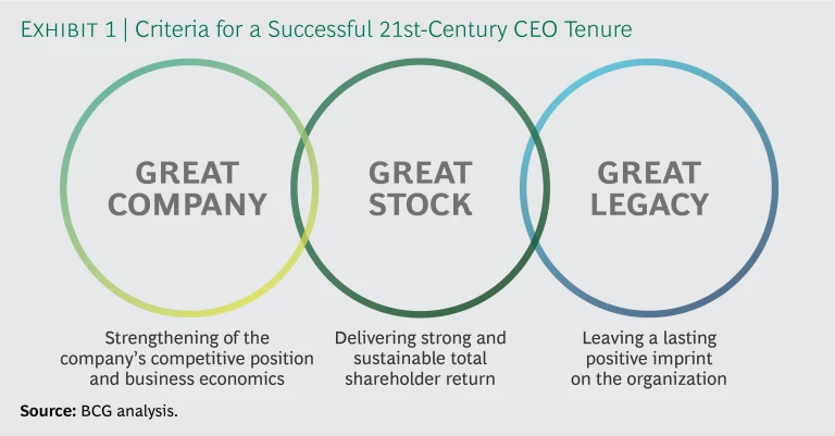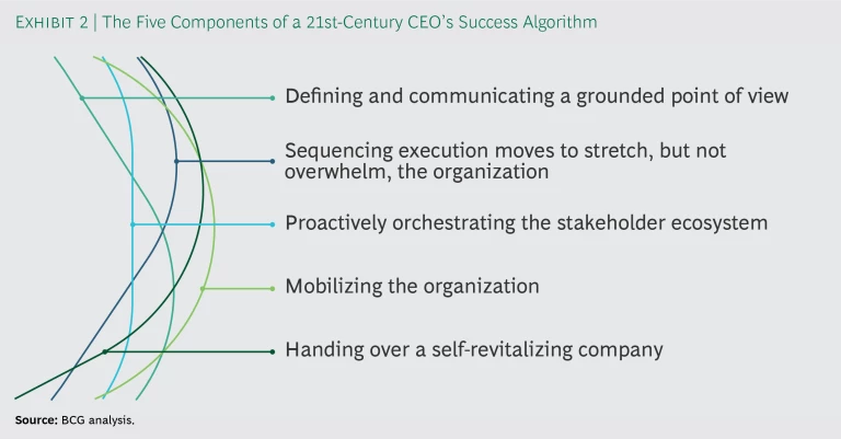 A recent BCG research project has been examining CEO tenure in all its aspects and working toward just such an algorithm. The project surveyed more than 450 CEOs in the US and Canada from the “starting classes” of 2009 through 2011. It involved the use of AI and included in-depth interviews with 14 prominent CEOs and board directors. By identifying the most successful CEOs and then isolating and analyzing their distinctive characteristics, we now know the most promising components of an algorithm for a successful 21st-century CEO tenure.