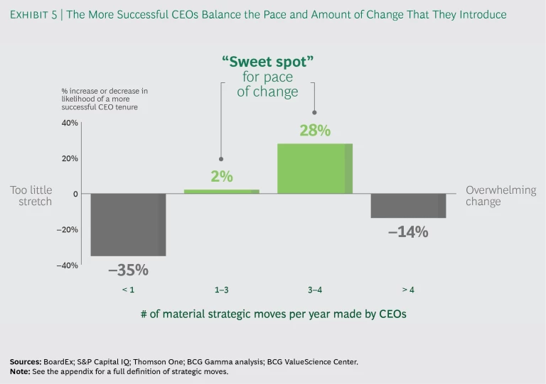 The more successful CEOs make their strategic moves at a pace and in a sequence that challenge the organization and avert complacency. They do so by accurately evaluating both the external windows of opportunity and the organization’s internal capacity for change.