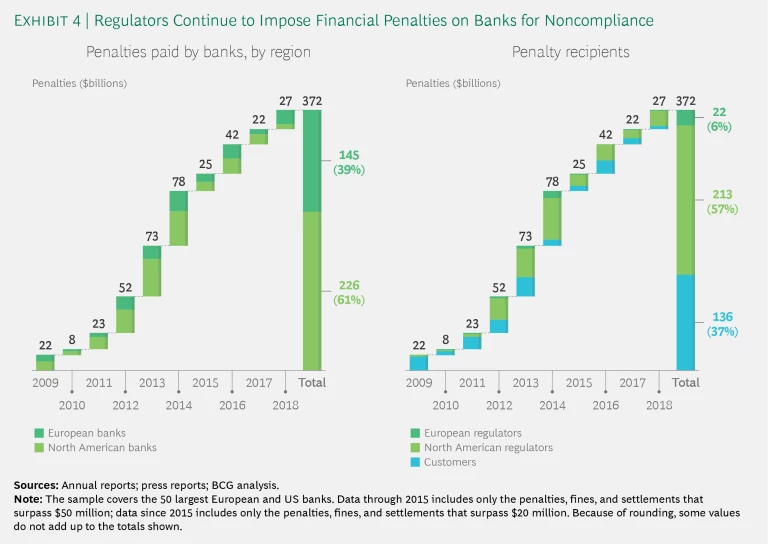Since 2009, banks worldwide have paid $372 billion in penalties. (See Exhibit 4.)