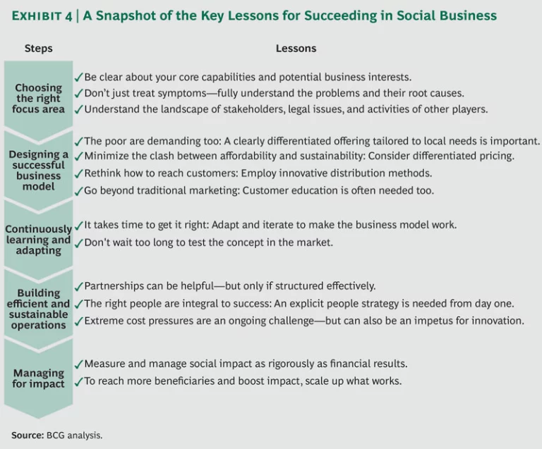 Although all these emerging models vary in the degree to which they combine profit targets with social targets, they all are built around the same basic belief: applying business principles to social problems can significantly increase efficiency, effectiveness, and financial sustainability. That’s why many of the lessons from social businesses presented in this report can also be applied to other emerging business models.