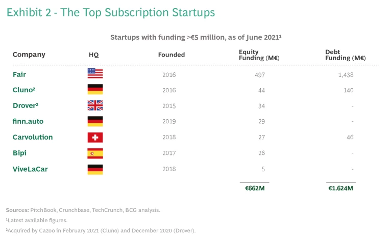 In Europe and the US, OEMs and other players—dealers, traditional rental and leasing companies—have already made their foray into subscriptions, joining a number of startups. So far, Europe remains the largest market by revenues. Venture capital continues to flow in.