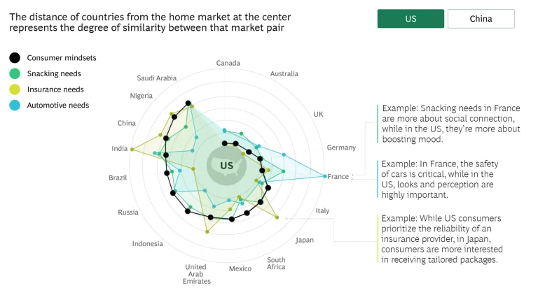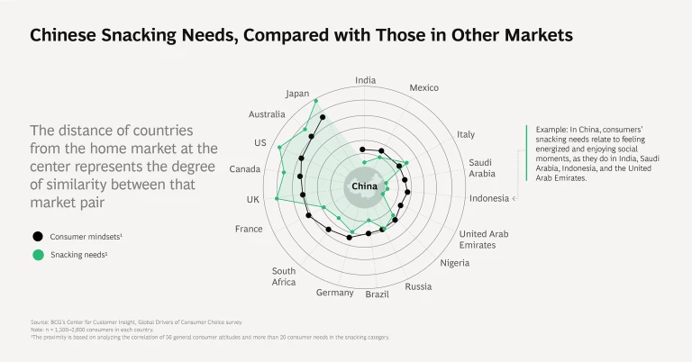 This insight could be highly valuable for companies searching for new growth markets. For instance, a Chinese snacking company that is successful at home might be able to identify opportunities to expand into Saudi Arabia and Indonesia given the similarities in needs.