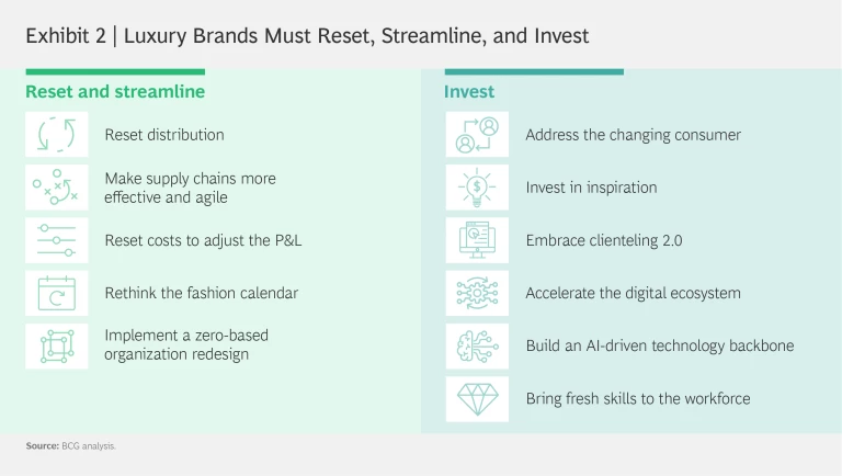 Reset costs to adjust the P&L. To counter the near-term reality of lower revenue and preserve operating profits, luxury brands must reshape their P&L. They must adjust costs across the board, including such fundamentals as the cost of goods sold, rent, and personnel.