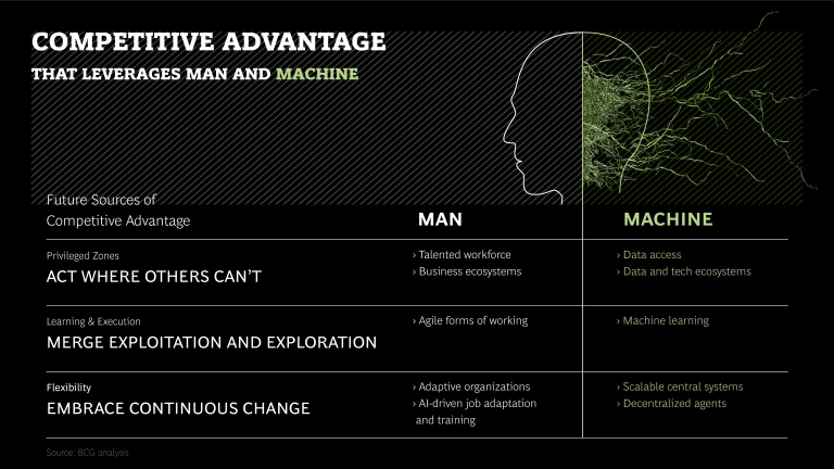 In this new AI-inspired world, where the sources of advantage have been transformed, strategic issues morph into organizational, technological, and knowledge issues, and vice versa. Structural flexibility and agility—for both man and machine—become imperative to address the rate and degree of change.