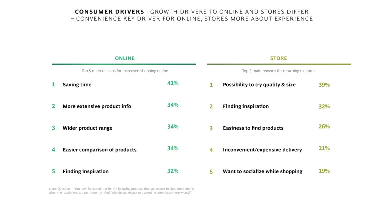 Unsurprisingly, the pandemic has led to unforeseen challenges for physical stores. Health concerns and work from home has kept people from the city centers and dramatically reduced store traffic. The shift is driven by more than just concerns over the pandemic; key reasons that were stated for not visiting stores included that it’s time consuming; a less exhaustive product range compared to online; and ultimately that it’s not as easy to compare prices and reviews (e.g. due to lack of easily accessible peer reviews).