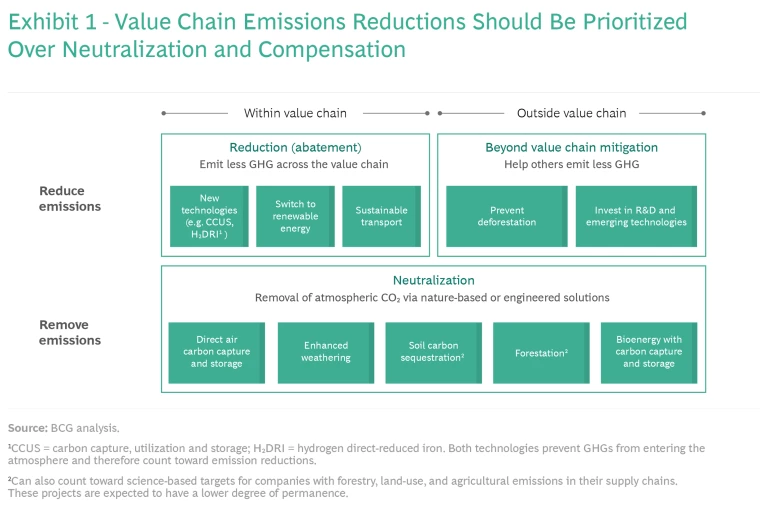 - Reduction. Abatement of emissions within a company’s value chain is, and must remain, the highest priority.