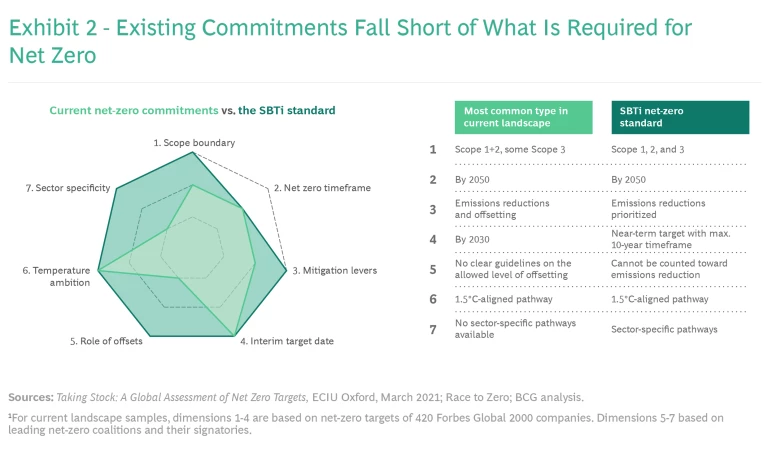 The lack of alignment on some of these dimensions is already raising concerns about comparability and the risk of real or perceived greenwashing by companies announcing net-zero commitments.