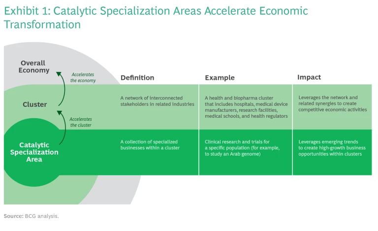 Catalytic specialization areas (CSAs) can jump-start and diversify an economy by tapping into current trends—enabling rapid commercial growth with relatively low investment.